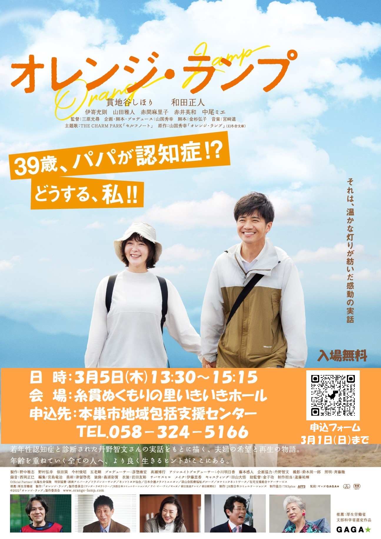 若年性認知症と診断された丹野智文さんの実話をもとに描かれた、夫婦の希望と再生の物語。入場無料です。ぜひともご参加ください。