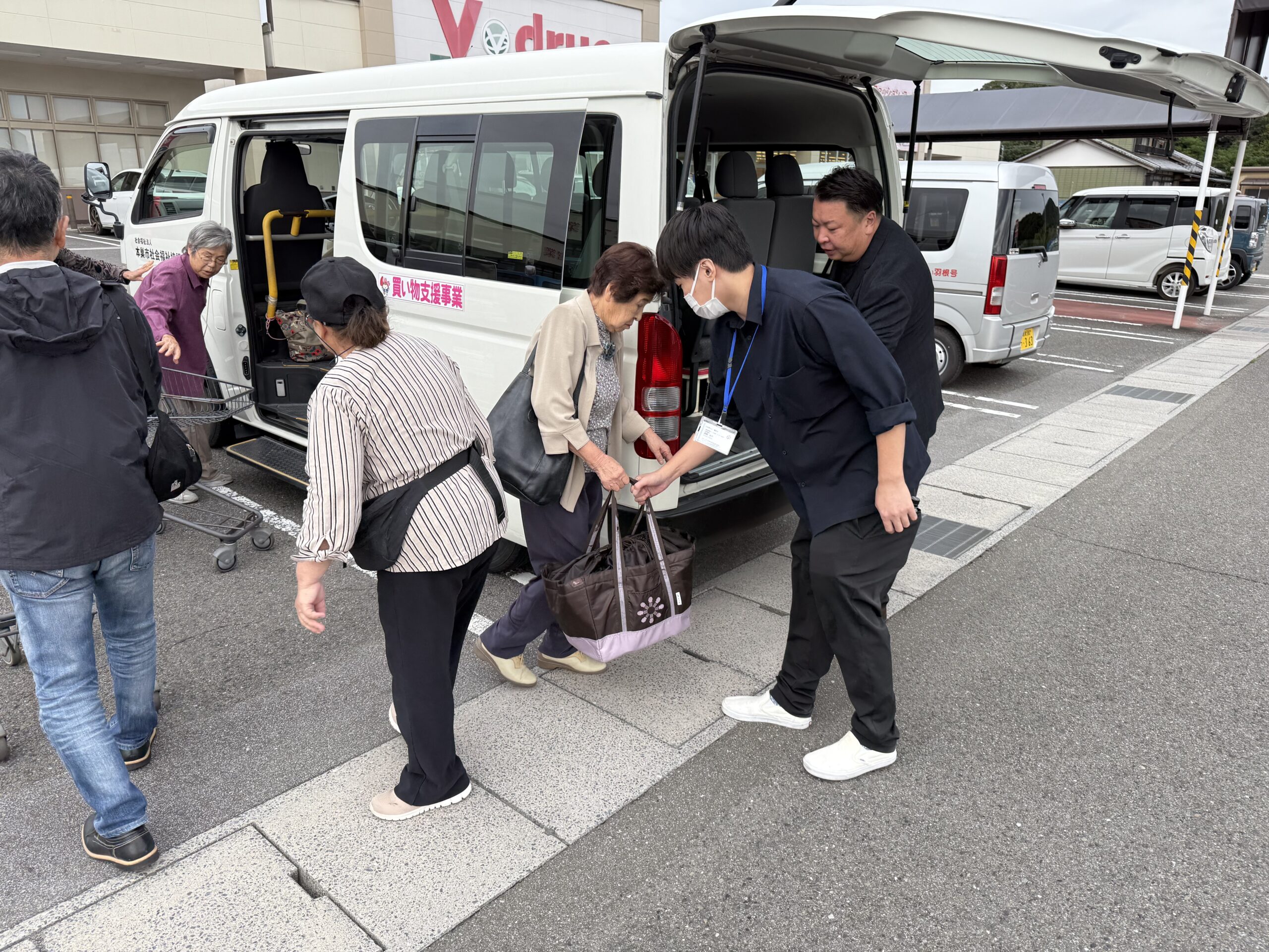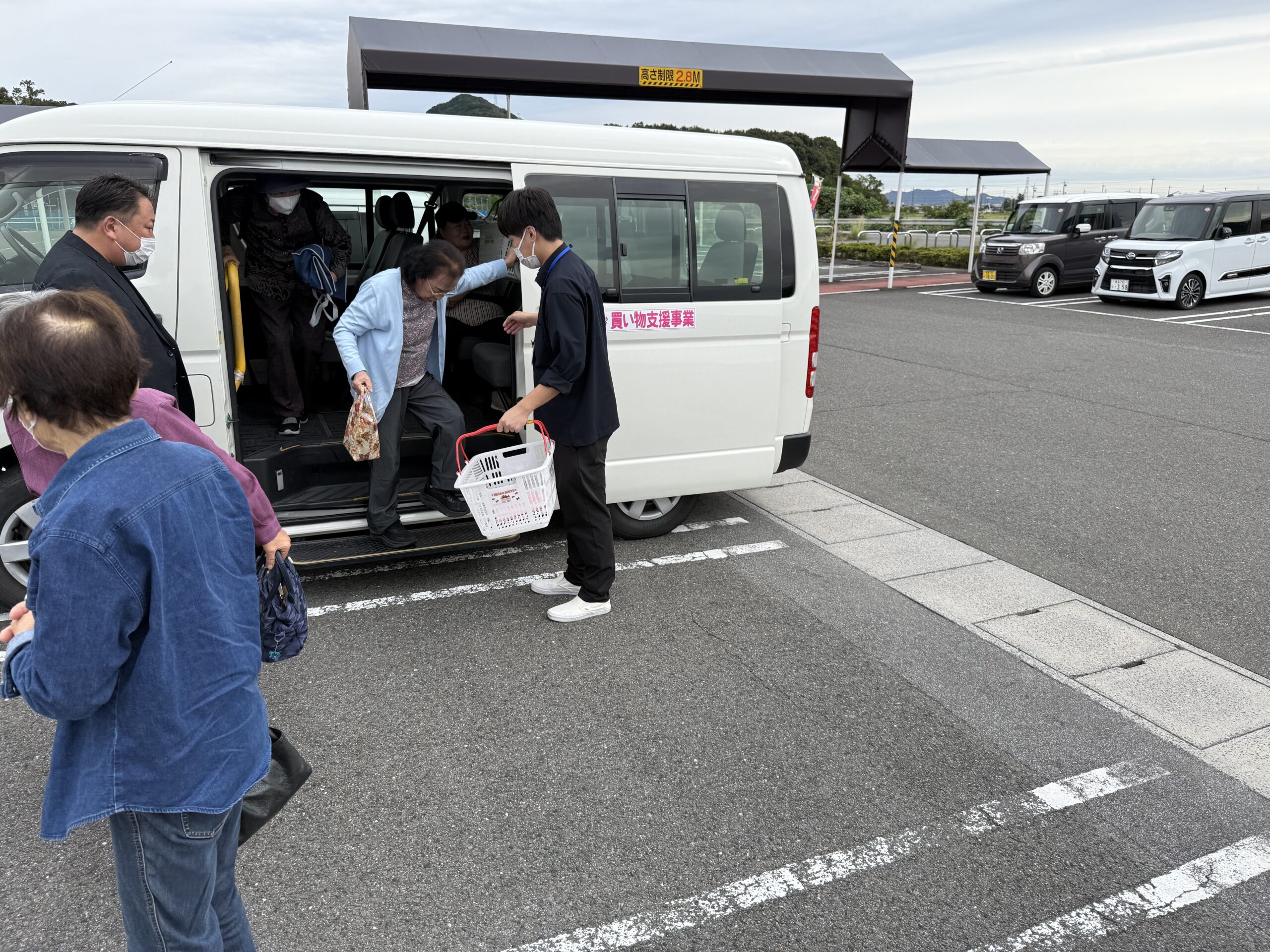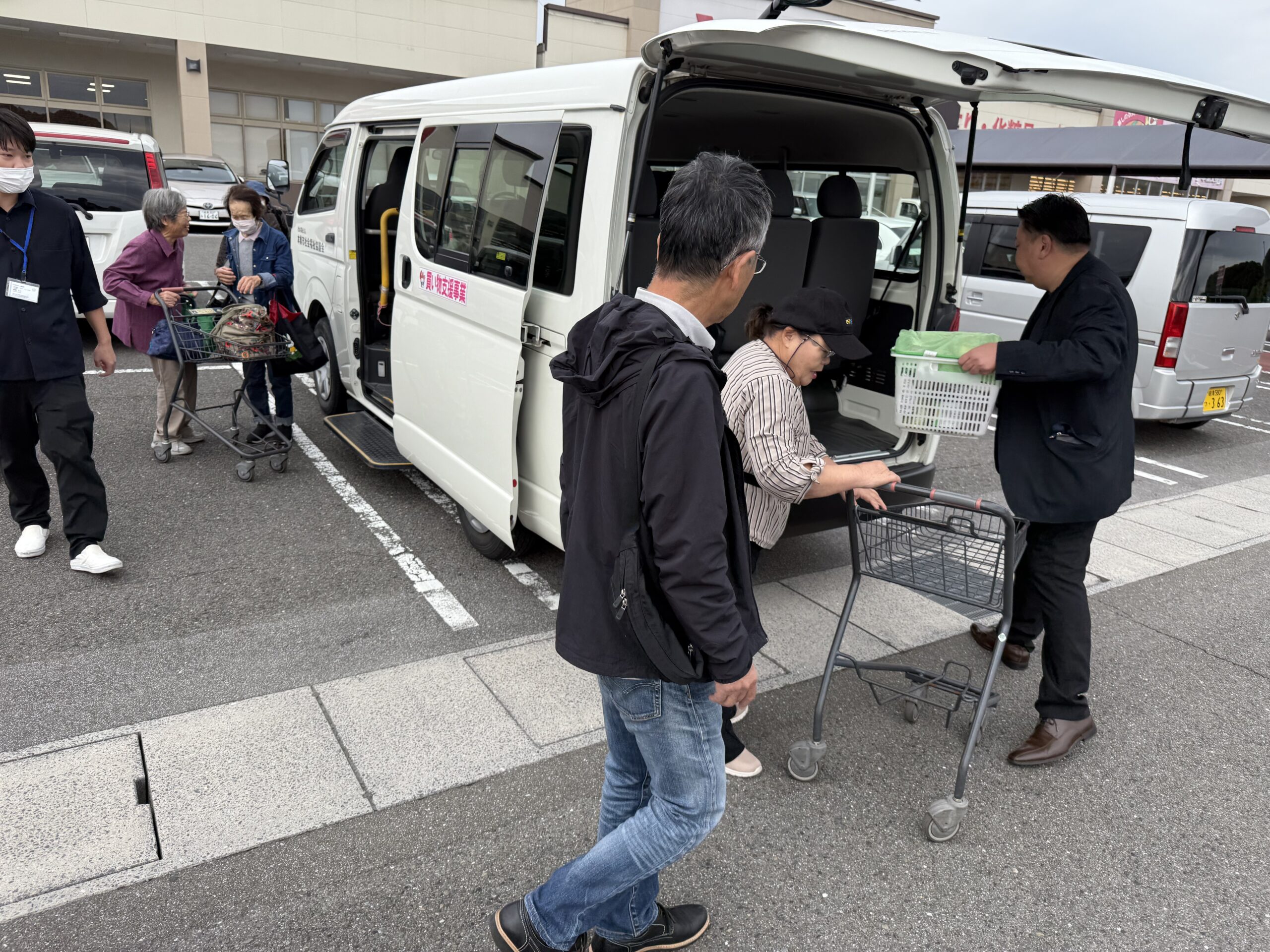 ほたるの里千手さんより「地域貢献の為にできることはないか」とお話があり、木知原の買い物支援の運転手として協力いただける事になりました。 「足元気をつけてくださいね」「荷物お持ちしますよ」と温かい声かけをいただき、利用者の方にも好評でした。 これからもご協力お願いします。